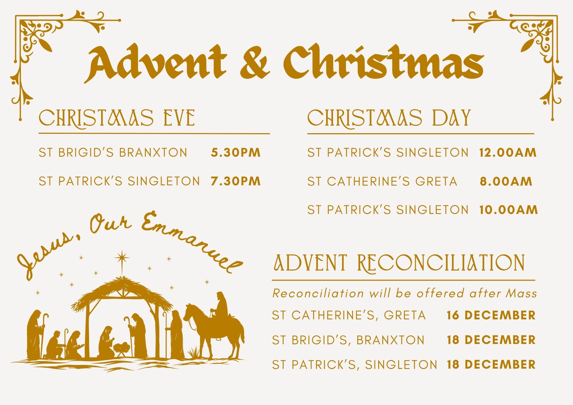 View Larger Image Christmas Mass Times By Singleton Catholic Parish|December 5th, 2025|Celebration Days, Parish News| Share This News: FacebookXLinkedInWhatsAppEmail Related Posts Feast Days this Week Gallery Feast Days this Week This Week’s Bulletin Gallery This Week’s Bulletin